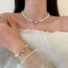 Magnetic Heart Pearl Choker Necklace and Bracelet