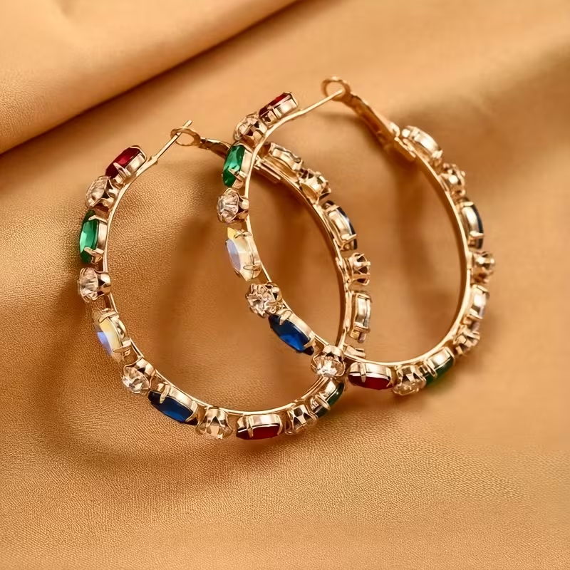 Colorful Zirconia Hoop Gold Earrings