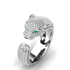 Adjustable Jaguar Ring in 18K Silver and Rose Gold with Green Zirconia Eyes