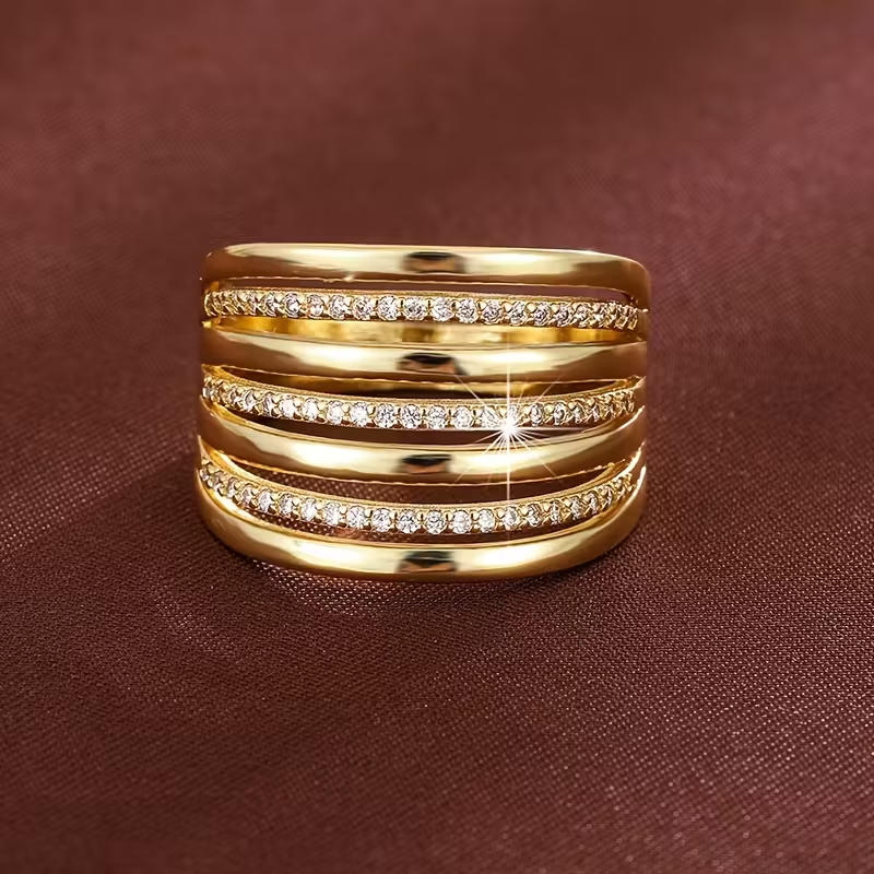 Wide Layer Zirconia Gold Ring