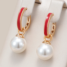 Elegant Red Enamel Pearl Earrings