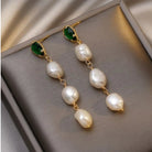 Pearl Pendant Earrings with Emerald in Gold